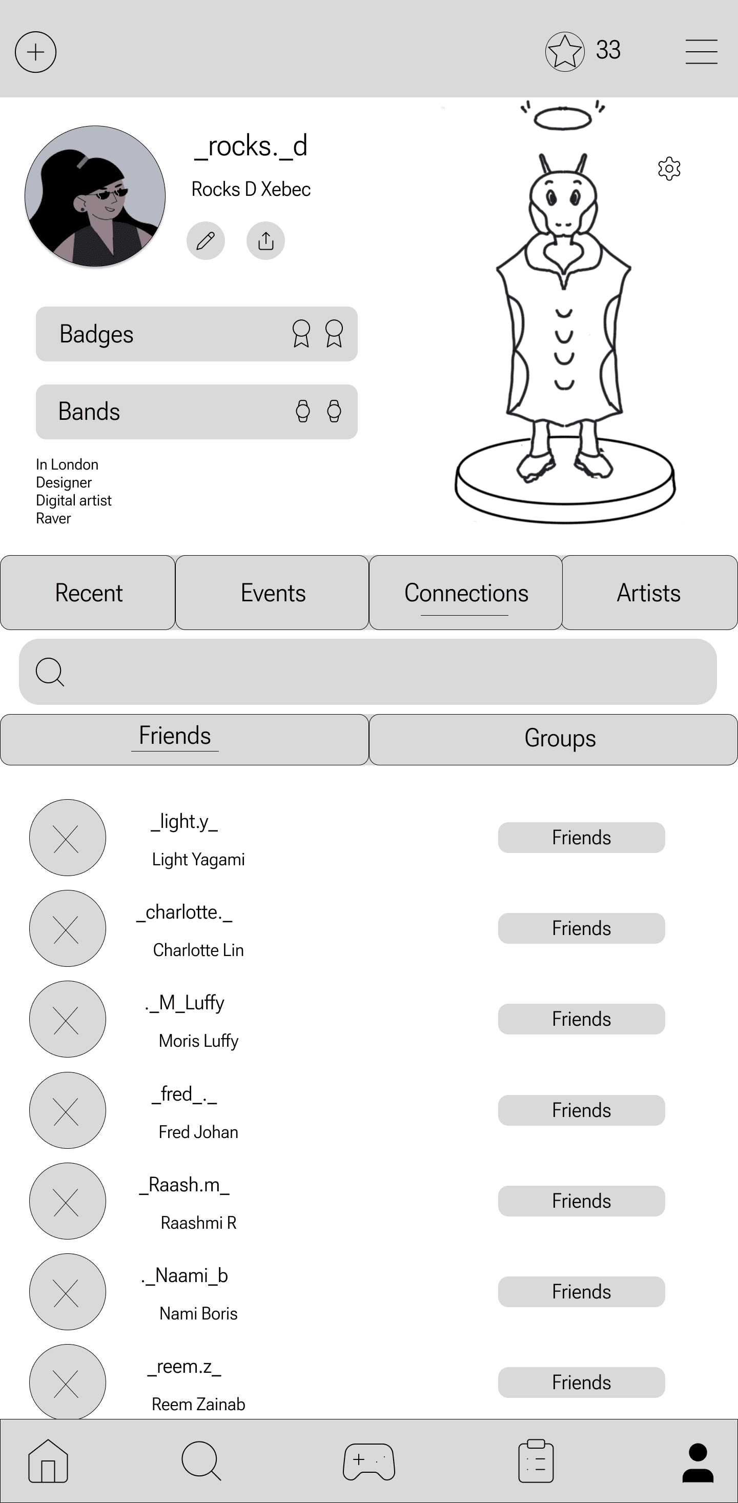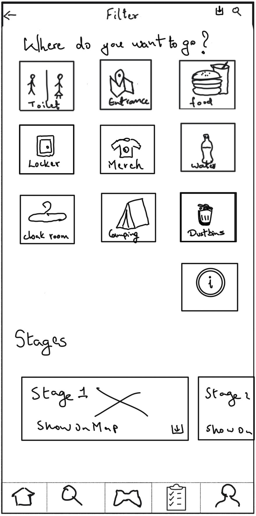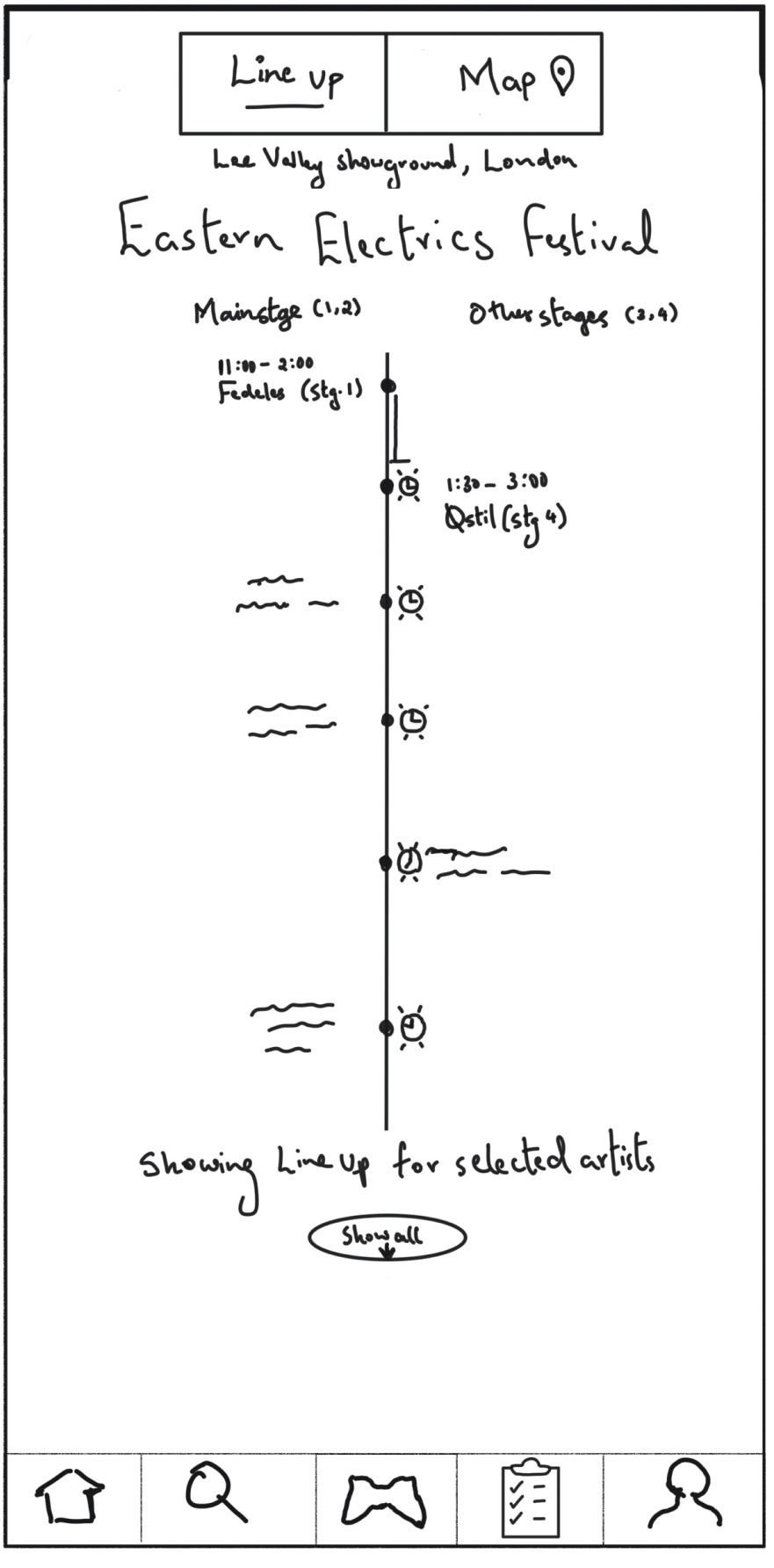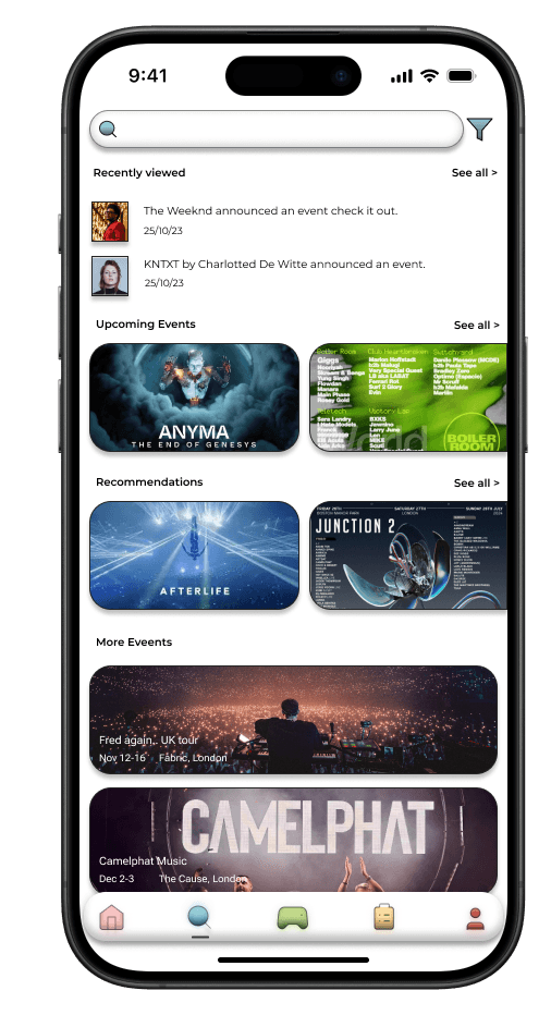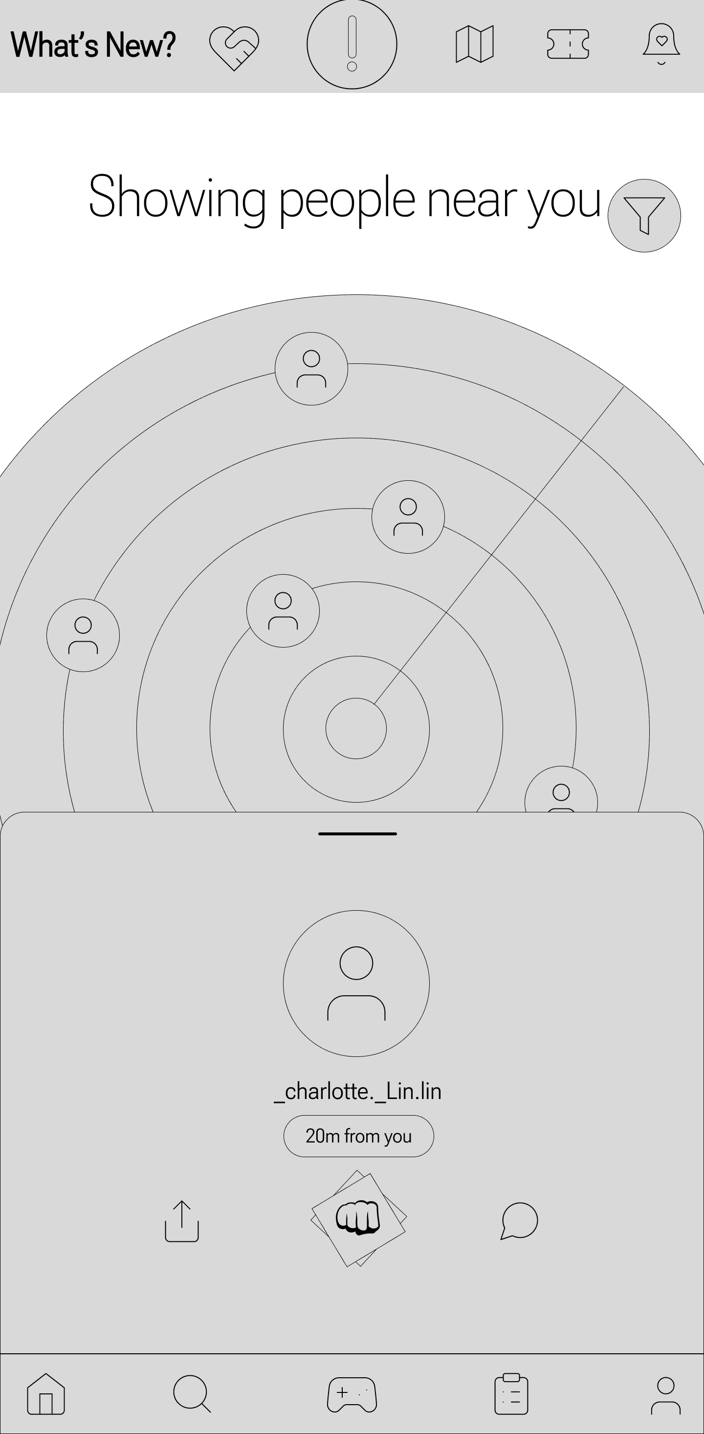 This feature was designed to help festival-goers easily connect with others nearby. The navigation bar's handshake icon, symbolizing connection, resonated with users, making the social focus of the app clear.
