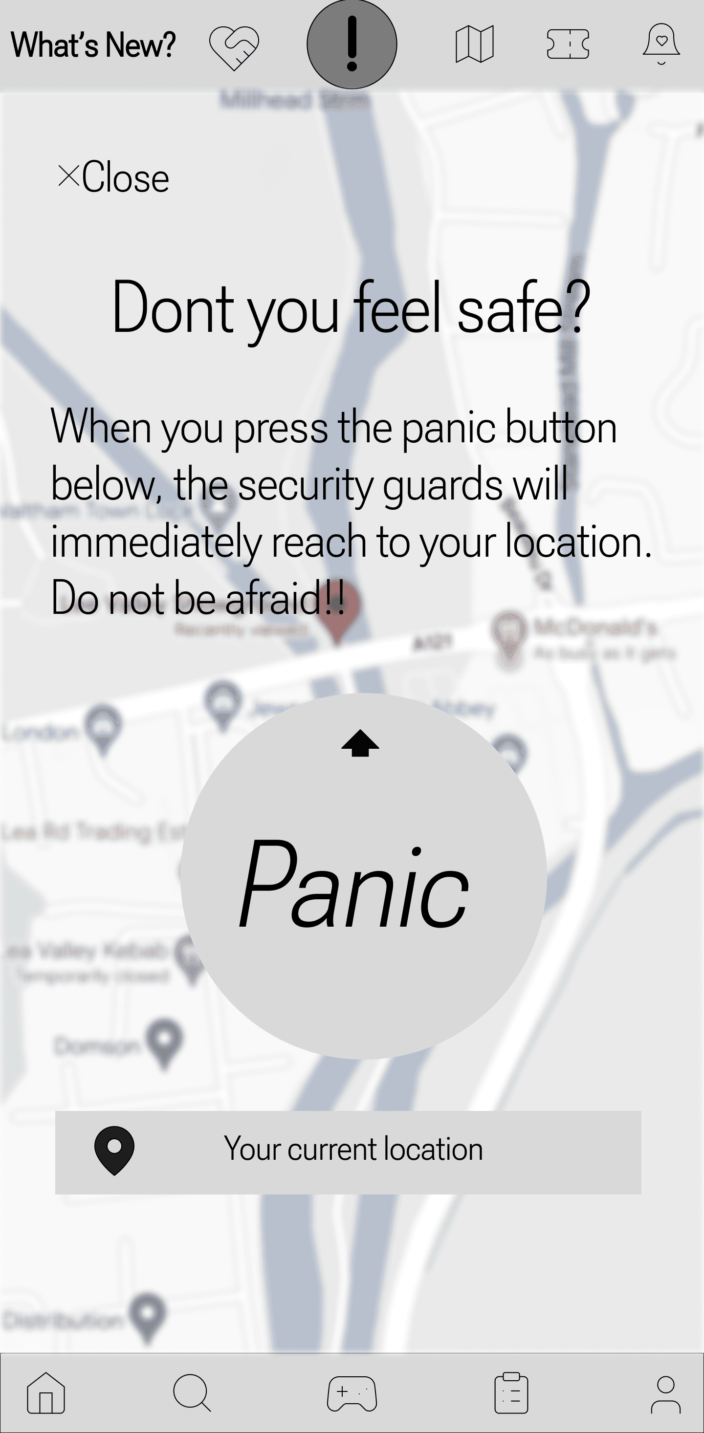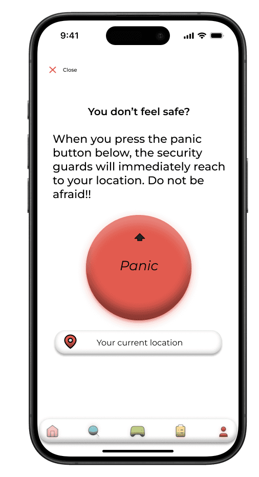 Usability Test: The panic button received positive feedback for its visibility and clear purpose. Participants appreciated the added sense of security it provided.