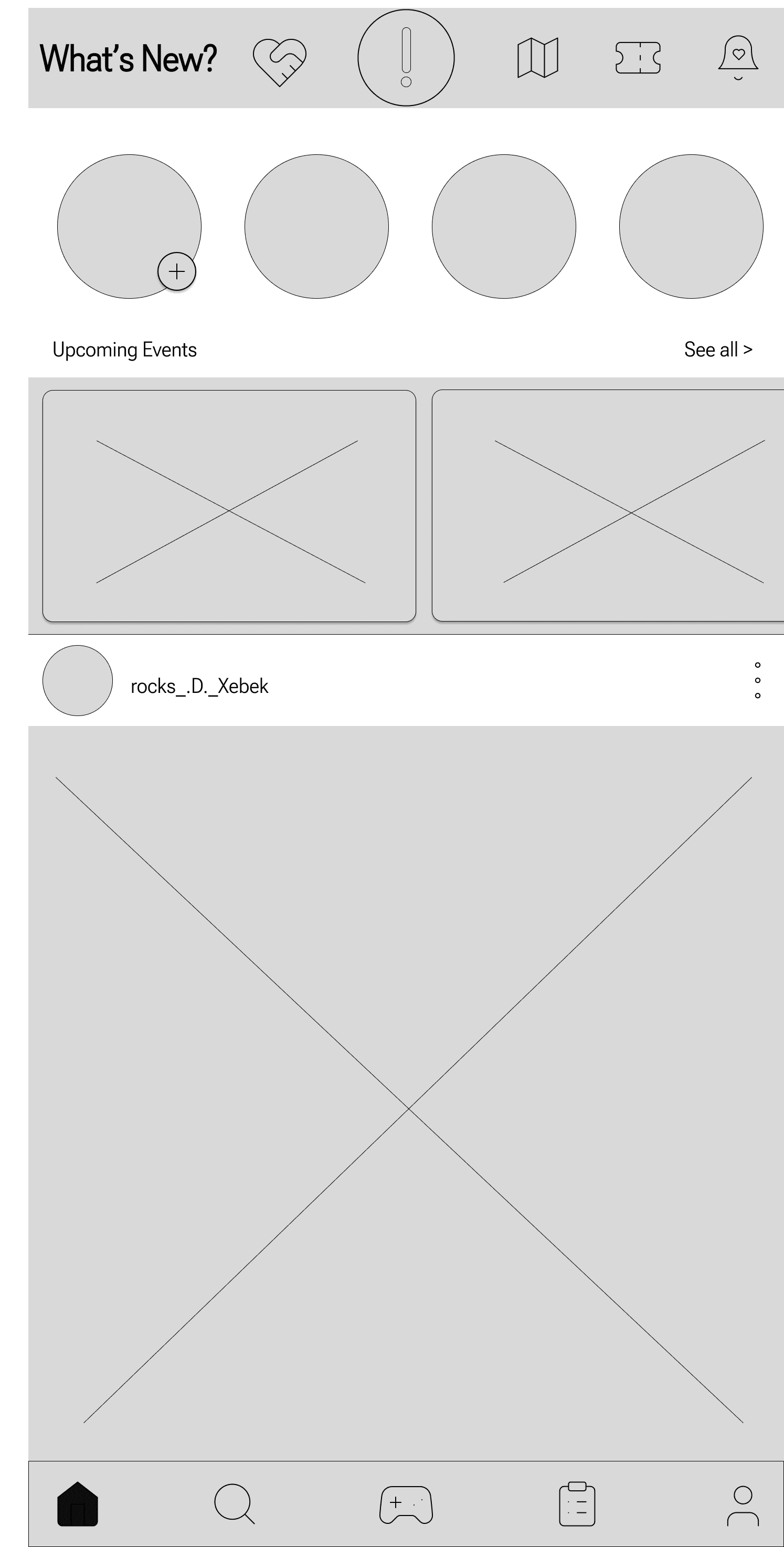 The home page design prioritizes intuitive navigation, with top and bottom bars featuring familiar icons. I refined the map icon to be more recognizable, drawing inspiration from popular social media platforms to expedite user adaptation.