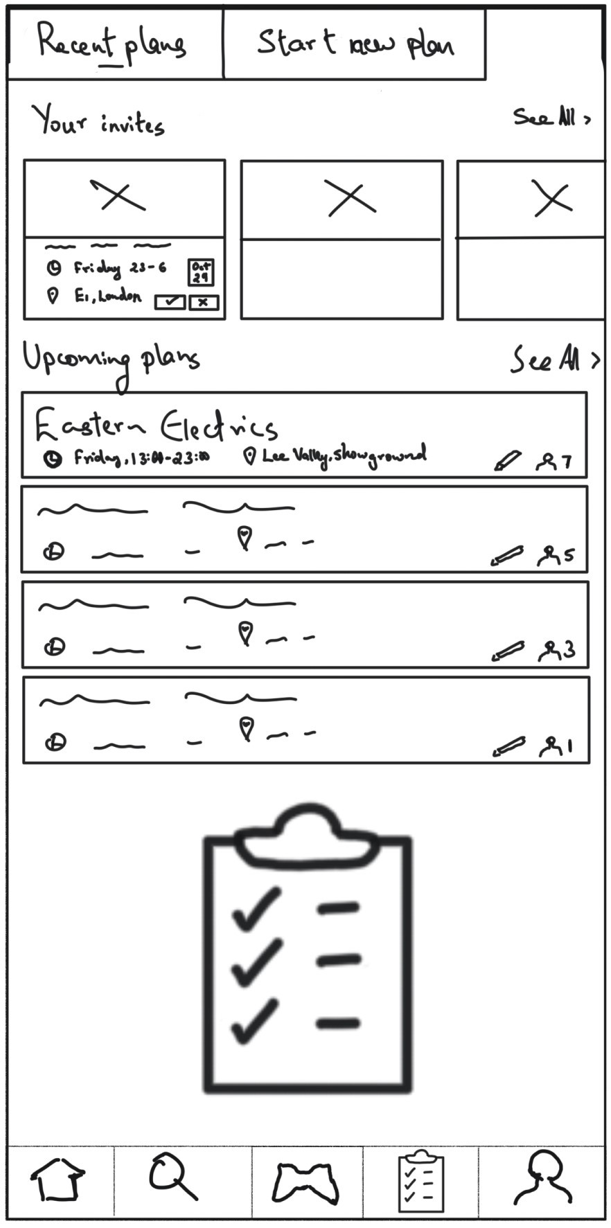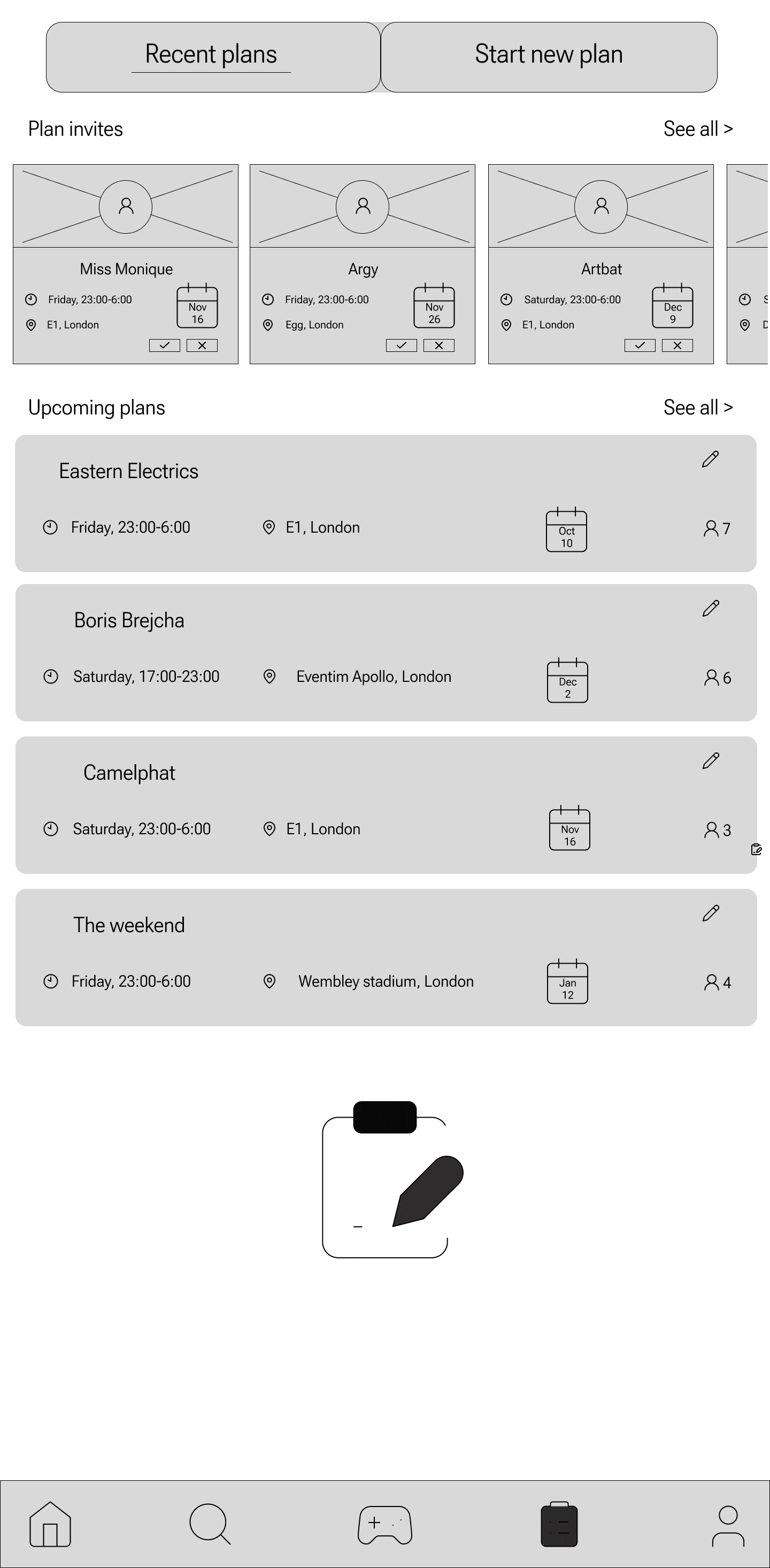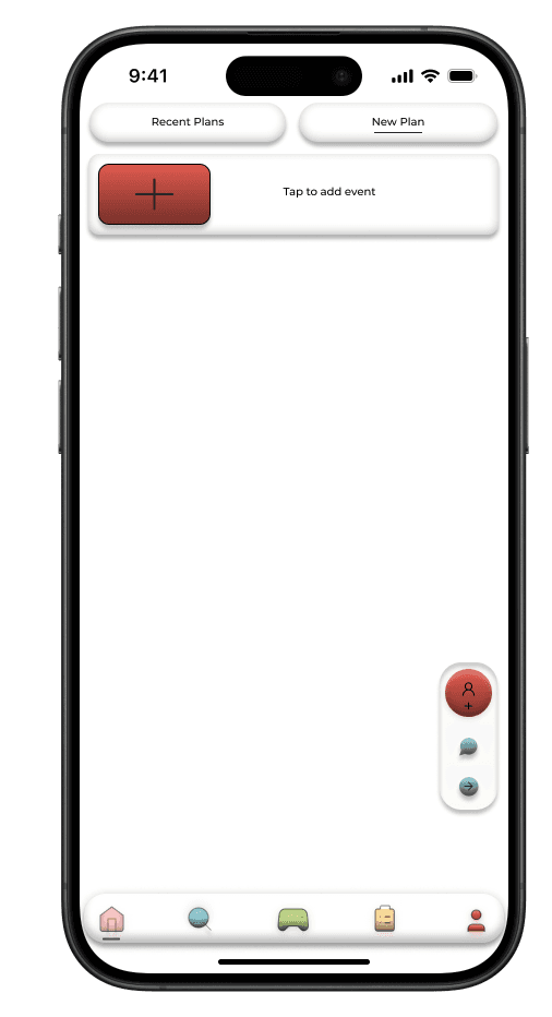 The Event Planning feature centralizes recent and upcoming plans, allowing users to organize outings with friends efficiently.